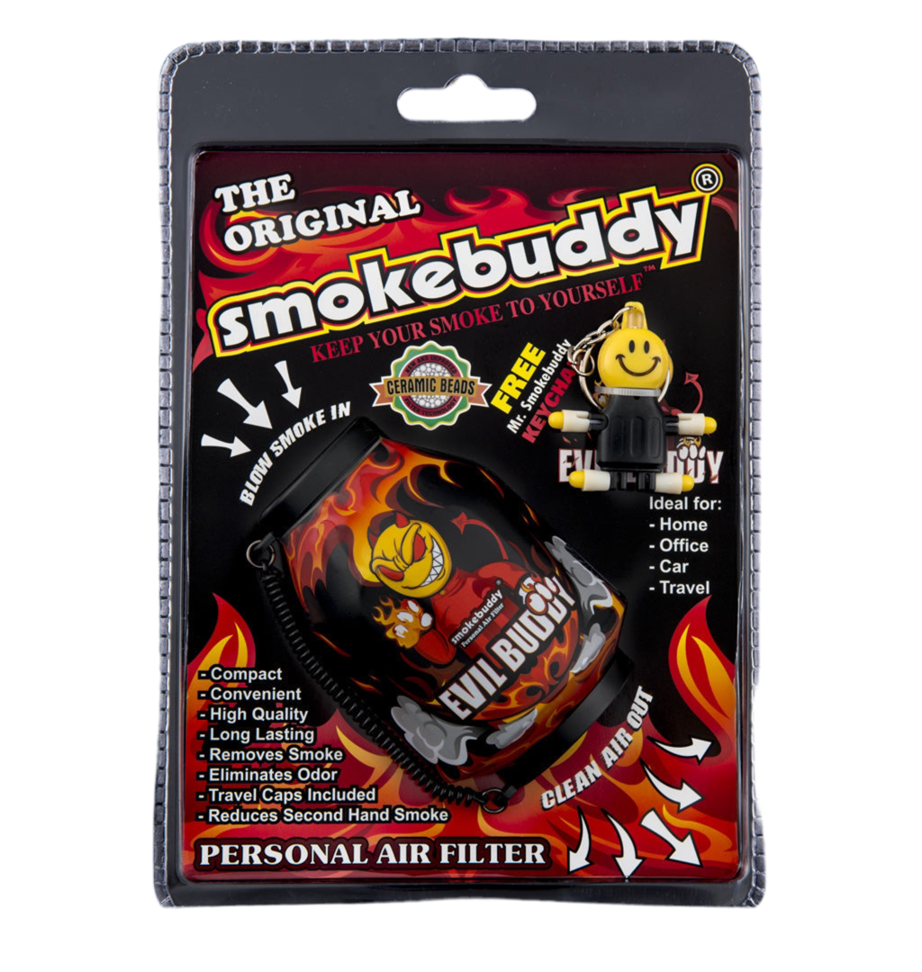 The Smoke buddy is a handy, and reliable, lifesaving air filter. Simply exhale your smoke through your easy-to-use Smoke buddy and odorless air comes out the other end.
